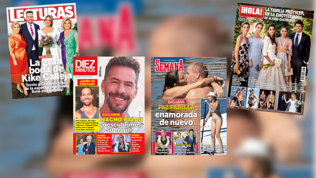 En el caso de Lecturas, la revista ya vio la luz el pasado lunes con un exclusivo reportaje de la boda de Kike Calleja y Raquel Abad, a la que no faltaron las hermanas Carmen Borrego y Terelu Campos, que posaron radiantes junto a los novios. En cuanto a la revista ¡Hola!, como no podía ser de otra manera, centra su portada en la boda de Álvaro Castillejo y Cristina Fernández, con un amplio despliegue al que no faltó Tamara Falcó, Ana Boyer e Isabel Preysler, que además ejerció como madrina. La revista desgrana todos los detalles de esta emotiva celebración que se llevó a cabo en Sotogrande.