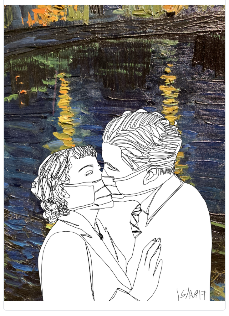 Una pareja besándose con mascarillas de por medio fue la inspiración para darle vida a su obra “Beso Estrellado”, la cual vendió en cuestión de minutos en la plataforma Open Sea.