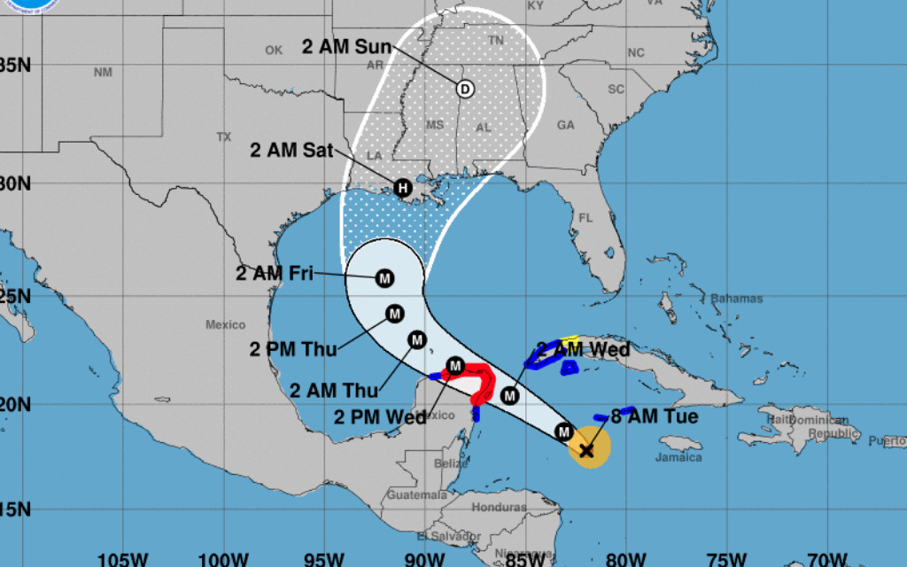El CNH -que tiene su sede en Miami- prevé que la tormenta descargue abundantes lluvias en la Península de Yucatán y que luego enfile hacia el Golfo de México para tocar tierra en algún punto entre los estados de Luisiana y Florida, en el sur de Estados Unidos.