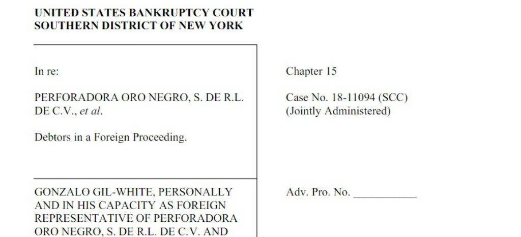 Oro Negro enfrenta en México un concurso mercantil en el que sus principales acreedores son precisamente los bonistas, por una suma de 939 millones de dólares, casi lo mismo que exige en esta demanda en Nueva York.