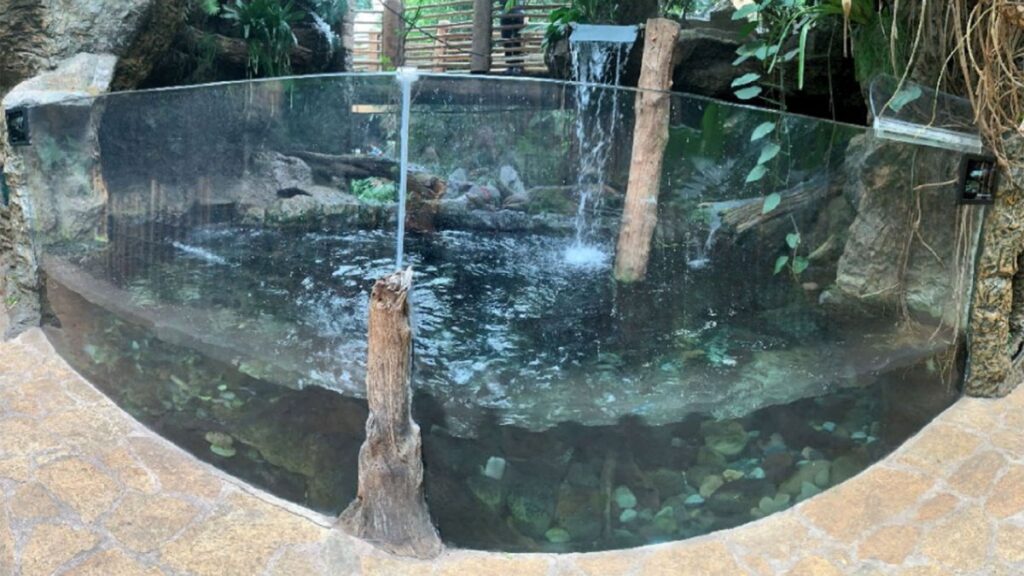 las pantallas advierten a los visitantes que las nutrias pueden ser agresivas, pueden saltar varios pies fuera del agua, pueden alcanzar la exhibición y pueden causar infecciones y lesiones importantes”, precisa la demanda.