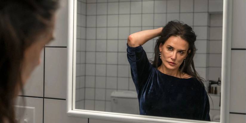 Apoyándose en una forma intrépida de autoparodia como Elisabeth, Moore brilla en su papel cinematográfico más poderoso en años. Su giro fundamental como estrella en decadencia y sus sinceras reflexiones en la Mesa Redonda de Actrices resaltan los desafíos de mantener la relevancia en una industria que no otorga a las mujeres envejecidas en la pantalla la misma longevidad y el mismo reconocimiento que siempre han recibido sus homólogos masculinos. La película de terror corporal de Fargeat se centra en un personaje que lucha con los duros estándares de belleza de Hollywood. que refleja fielmente el propio viaje de Moore al cuestionar su lugar en la industria del entretenimiento.