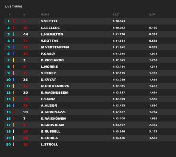 Vibrante volverá a ser la batalla entre compañeros que protagonizarán Vettel y Leclerc. El monegasco fue superior a Sebastian en gran parte de sus intentos excepto en el último, cuando Charles tuvo que abortar su vuelta al pasarse de frenada en la curva 1, algo que aprovechó Sebastian para liderar la sesión.