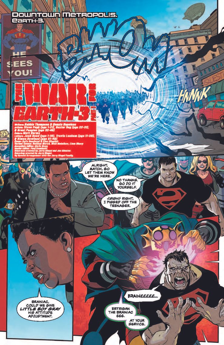 Muchas gracias a Dennis Hopeless y Robbie Thompson por tomarse el tiempo para conversar sobre el próximo evento cruzado de DC Comics. La Guerra por la Tierra-3 comienza con guerra por la tierra 3 #1 (del #3) (por Hopeless, Thompson, Steve Pugh, Dexter Soy y Brent Peeples) y escuadrón suicida #13 (de Hopeless, Thompson, Eduardo Pansica, Julio Ferreira, Marcelo Maiolo y Soy) llegará a las tiendas de cómics el 1 de marzo de 2022. Puede encontrar más información sobre el crossover aquí.