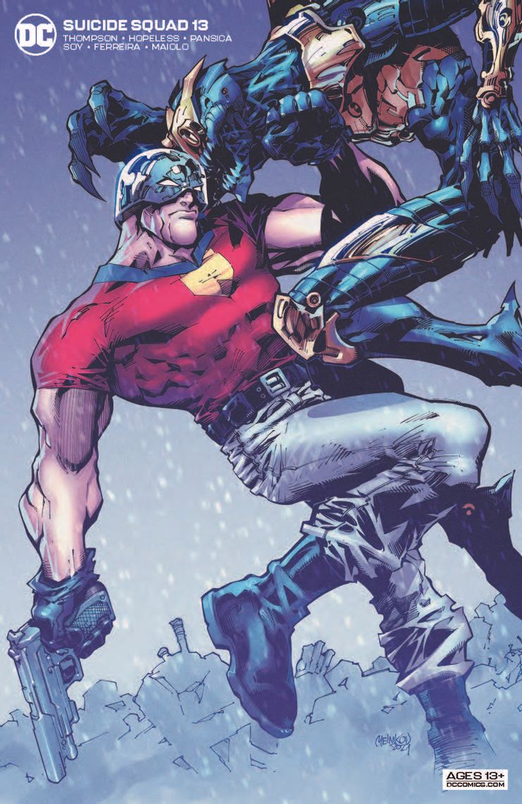 Sin esperanza: Rick Flag se ha vuelto rebelde. Ha reclutado a un equipo de ex-miembros del Escuadrón para tratar de detener a Waller. Después de todos estos años bajo el control de Waller, viendo cómo su definición de “lo que sea necesario” se vuelve más oscura y letal, Flag ya ha tenido suficiente. Su equipo está temporalmente libre de las bombas de cuello de Waller y planea usar esa ventana para evitar la invasión. Desafortunadamente, como vimos al final de SS #12, Waller los vio venir. Ella está tres pasos por delante, como de costumbre, así que cuando War for Earth 3 comienza, Flag y su escuadrón están siendo tragados por un monstruo Clayface gigante.