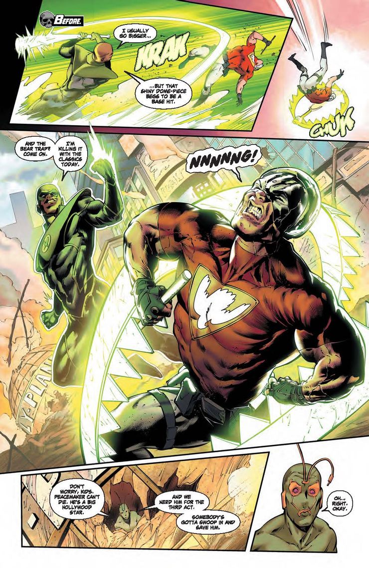 Sin esperanza: Me encanta escribir equipos de aceite y agua. Mi carrera en los cómics ha estado llena de ellos, pero siempre se me acercan sigilosamente. Puercoespín y Mujer Araña. Forge y el Dr. Némesis. Arcade y asesinato adolescente. No vi venir a ninguno de esos. Todo sucedió en la página. Peacemaker and Ambush Bug no es una excepción. Tiene mucho sentido que estos dos sean divertidos juntos, pero se nos coló por completo. Culpo a Robbie.