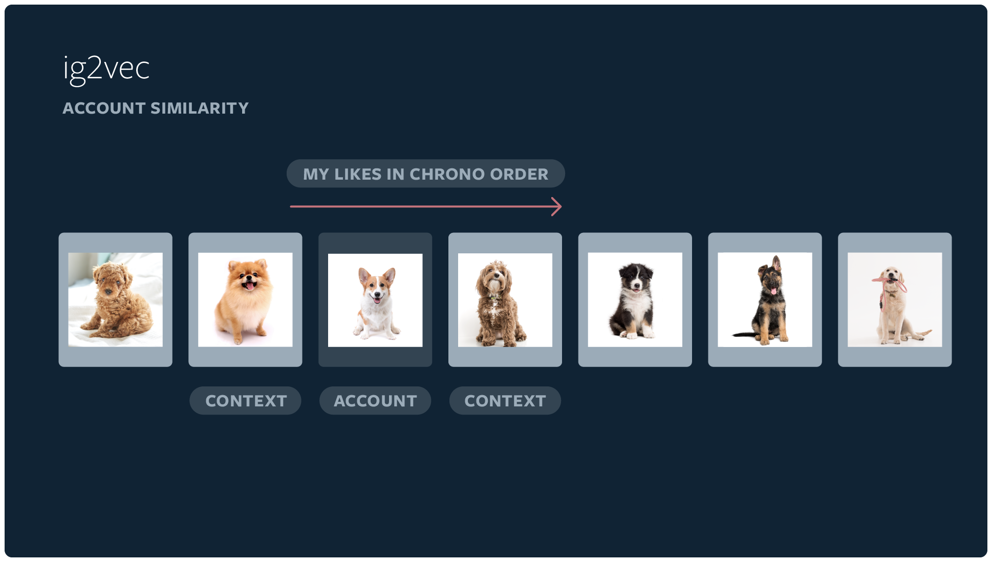 Si un individuo interactúa con una secuencia de cuentas en la misma sesión, es más probable que sea tópicamente coherente en comparación con una secuencia aleatoria de cuentas del diverso rango de cuentas de Instagram. Esto nos ayuda a identificar cuentas tópicamente similares.