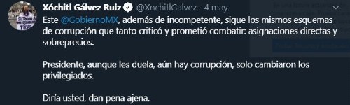 “La secretaria (Irma Eréndira Sandoval), ya emitió un comunicado de prensa que se va a conducir con absoluta imparcialidad. Las denuncias le obligan a informarnos de todo el desarrollo de la investigación, vamos a tener acceso al expediente y saber exactamente los criterios de honestidad, imparcialidad, y quién hizo el estudio de precios”, explicó.