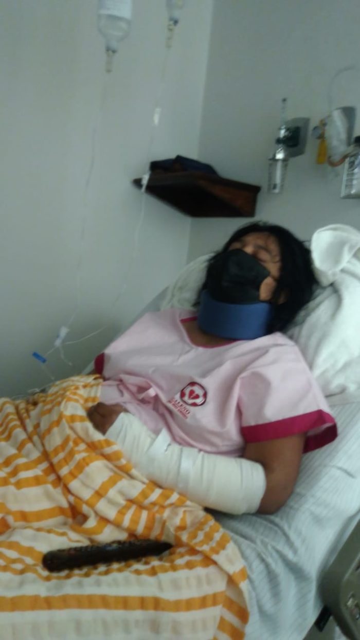 “A mí me golpearon muy feo y a mi hija más, a ella la sacaron del coche y la esposaron, le rociaron ese gas y no podía ver, después nos llevaron a un lugar donde nos tuvieron por varias horas. Después nos valoró un médico y la internamos, a mí me soltaron el viernes por la tarde, pero mi hija es la más afectada”, agregó.