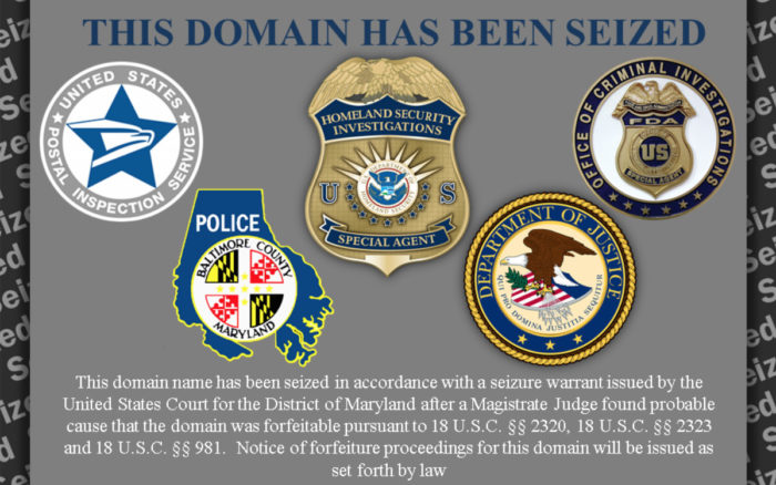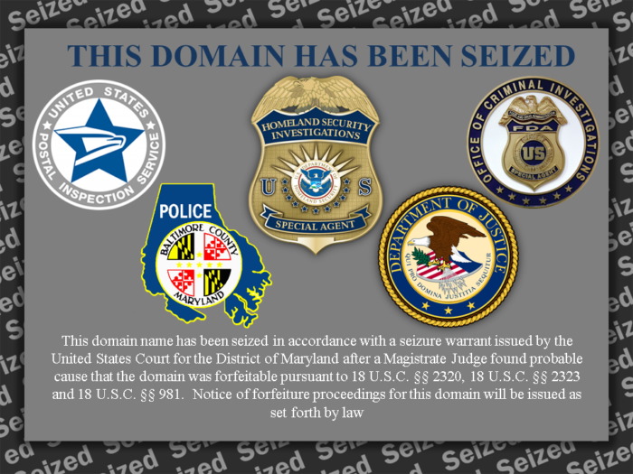 Desde ayer, las personas que visiten el sitio ven un mensaje de que el sitio ha sido incautado por el gobierno federal y serán redirigidos a otro sitio para obtener información adicional.