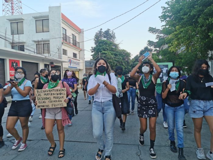 Juchitán, Oax.- Con sus pañoletas verdes y carteles exigiendo “derecho a la salud y a una vida libre de violencia”, las feministas zapotecas del Istmo de Tehuantepec accionaron en el marco del Día Global para el Acceso Legal y Seguro.