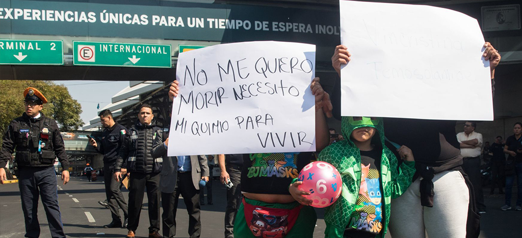 El pasado 22 de enero, madres y padres de niños con cáncer cerraron el acceso a la Terminal 1 del Aeropuerto Internacional de la Ciudad de México (AICM) en protesta ante el supuesto abasto de tratamiento contra esta enfermedad.
