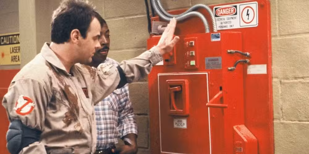 El quid de la cuestión “Walter Peck tenía razón“El argumento radica en el peligro inherente de la unidad de contención, cuya rejilla de confinamiento láser restringe a los fantasmas capturados. Estos riesgos se destacan en la escena en la que Winston (Ernie Hudson) aprende los conceptos básicos de la instalación de almacenamiento, con Egon (Harold Ramis) abiertamente preocupado de que pueda estar demasiado lleno en medio de la ciudad de Nueva York “como un twinkie“Niveles de PKE.