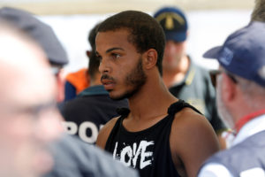 Presunto traficante sudanés es visto después de que el barco de rescate italiano Eleonore atracara en un puerto en Pozzallo, Italia (Foto: REUTERS / Antonio Parrinello)
