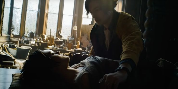 El tráiler muestra una toma de The Flash de Ezra Miller alternativo, el que tenía el cabello más largo y conducía el taxi, de pie sobre la Supergirl de Sasha Calle. El fondo, que presenta antigüedades y grandes ventanas góticas, sugiere que esto sigue siendo Wayne Manor, donde el equipo pudo haber establecido su base de operaciones. La Supergirl de Calle yace sobre una mesa, con una almohada debajo de la cabeza, lo que sugiere que está herida o se está recuperando de algo. Si el taxi que conduce The Flash de Ezra Miller es nativo de la dimensión de Batman de Michael Keaton, Sasha Calle podría estar interpretando específicamente a la Supergirl de esta dimensión.