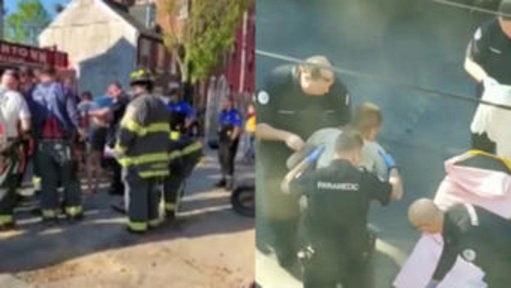 La increíble escena tuvo lugar el martes alrededor de las 7:50 a.m., cuando Josh Carl y otros trabajadores de la construcción en el edificio de Walnut Street Commons en la cuadra 500 de Walnut Street escucharon a un hombre gritando.
