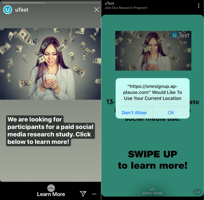Los anuncios de Facebook que reclutaban adolescentes para el programa no revelaron su participación.