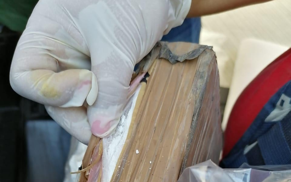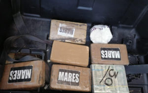En Mitsubishi, bajo el asiento del piloto, había una bolsa de plástico con vegetal verde con características propias de la marihuana y, en un compartimiento oculto, se localizaron cinco paquetes con cocaína, una bolsa de plástico transparente con piedra de color blanco y un paquete de plástico transparente con billetes de 20 dólares amarrados con ligas.