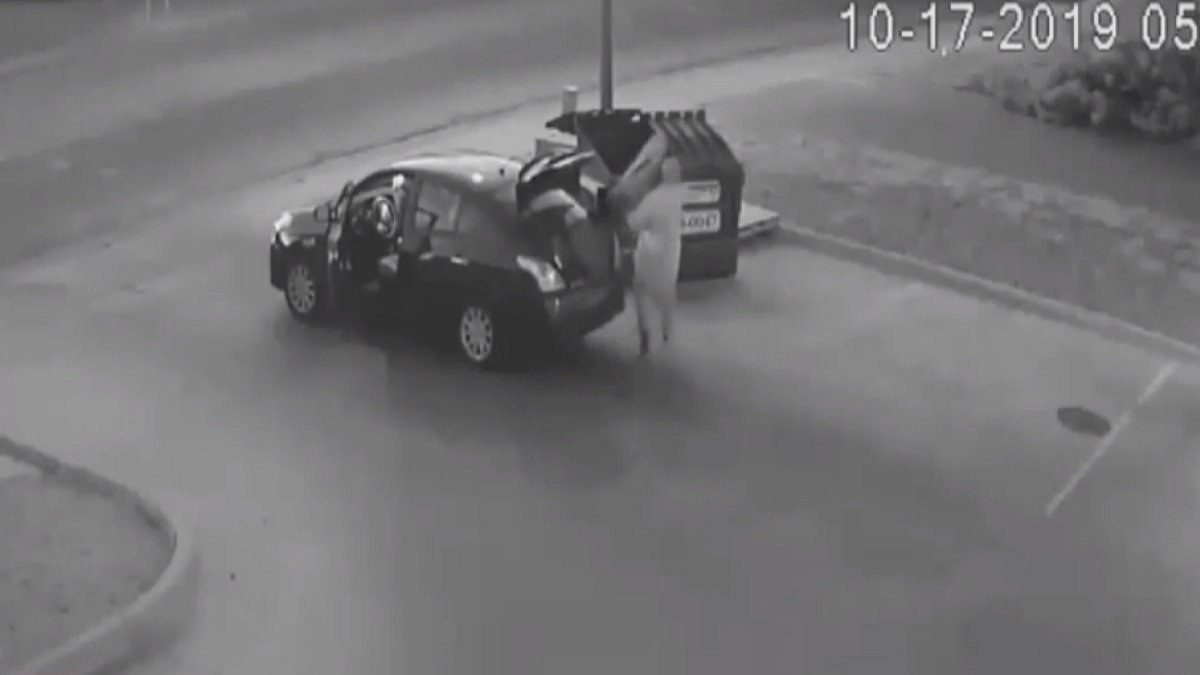 un hombre fue captado en video en el momento en el que aparentemente tira un cuerpo sin vida de una mujer a una basura. El cuerpo fue encontrado dentro de una maleta.