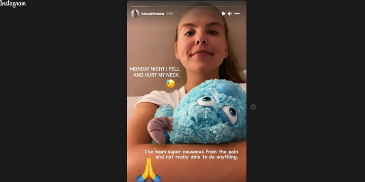 Esto ahora está demostrando ser una lección importante para Hannah. En su historia de Instagram, reveló a sus 2.6 millones de seguidores que se cayó y se lastimó el cuello el lunes por la noche. Ella pasó a compartir “He tenido muchas náuseas por el dolor y no he podido hacer nada.. “En la foto, una Hannah sin maquillaje y con una cola de caballo lucía cansada mientras abrazaba a un Sulley de felpa de Monstruos inc. Hannah les pidió a sus fans que “envía algunas oraciones y energía curativa a mi manera“e incluyó el emoji de manos de oración.