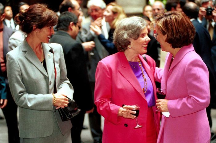 26 de noviembre de 2000: Celeste Batel, Elena Poniatowska y Rosario Robles después de que la jefa del gobierno capitalino (Robles) entregó un reconocimiento a la escritora.