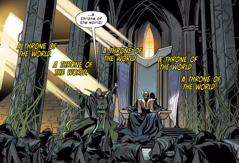 En Pantera Negra definitivaT’Challa está actualmente amenazado por los Progenitores, los espíritus que le dan al recurso místico vibranium de Wakanda sus asombrosas habilidades. Ayudando a los Progenitores están los Vodu-Khan, traidores al trono de Wakanda que quieren derrocar a Black Panther e instalar al “Niño de la Luz” como el nuevo gobernante de la nación.