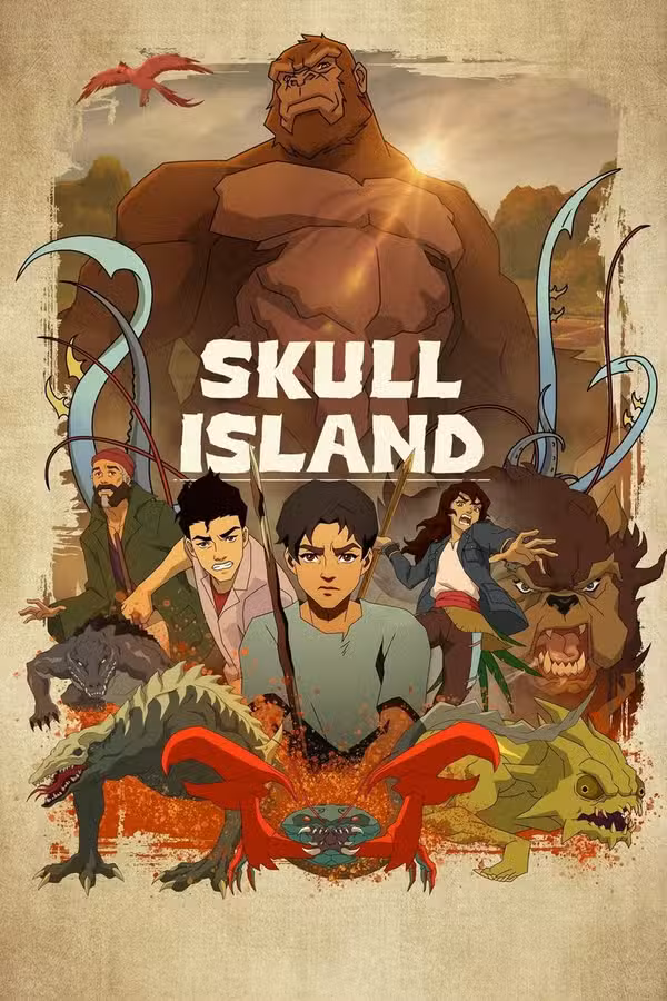 escapar de la isla calavera comienza con un nuevo grupo de supervivientes de Skull Island atrapados en el reino titular, donde luchan contra el salvaje ecosistema de la isla. A medida que estalla el caos y se acercan monstruosos depredadores, llega una amenaza mayor que amenaza tanto a los supervivientes como a Kong. Paralelamente a la historia de los personajes humanos, escapar de la isla calavera explorará los años de formación de Kong a través de flashbacks.