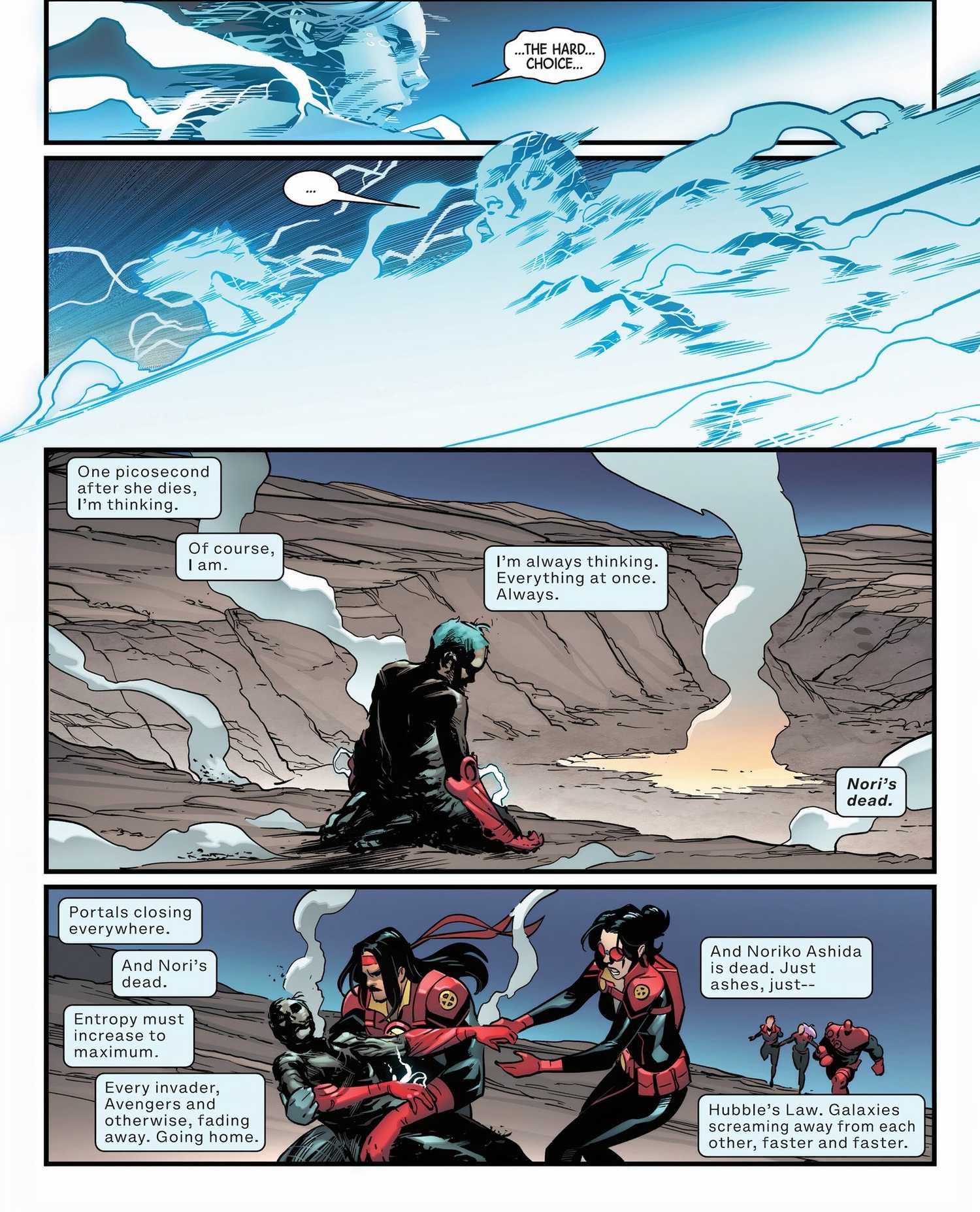 Surge sobrevivió al Día M, vivió un brutal ataque de los Purificadores, luchó contra los Nimrod Sentinels y soportó muchas de las mayores catástrofes mutantes. Siempre sentí que ella merecía ser una jugadora más importante, y parecía que X-Force era su oportunidad, especialmente con otros niños de Academy X activos en otros títulos. En cambio, ya me veo obligado a decir adiós al personaje que me atrajo. Tener una muerte heroica sigue siendo morir, y un regreso futuro no es fácil sin los Protocolos de Resurrección. Me siento decepcionado, tanto a nivel personal como por un personaje tan talentoso e infrautilizado.