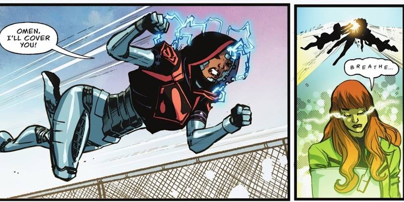 Por ejemplo, chica poderosa El número 11 de Williams y Melo se centra en la primera cita de Paige con el misterioso Axel Gust, que luego se reveló como el personaje más nuevo parecido a Loki de DC. La repentina aparición de Aquus, un supervillano acuático, en el Acuario de Metropolis obliga a Axel y Paige a revelar sus poderes, para sorpresa de ambas partes. Están demasiado absortos en su propia conmoción como para combatir a la bestia. Afortunadamente, Steel entra en escena. Mientras Power Girl y el asgardiano discuten en el fondo, Natasha Irons derrota al monstruo y ayuda a los ciudadanos a evacuar al fondo..