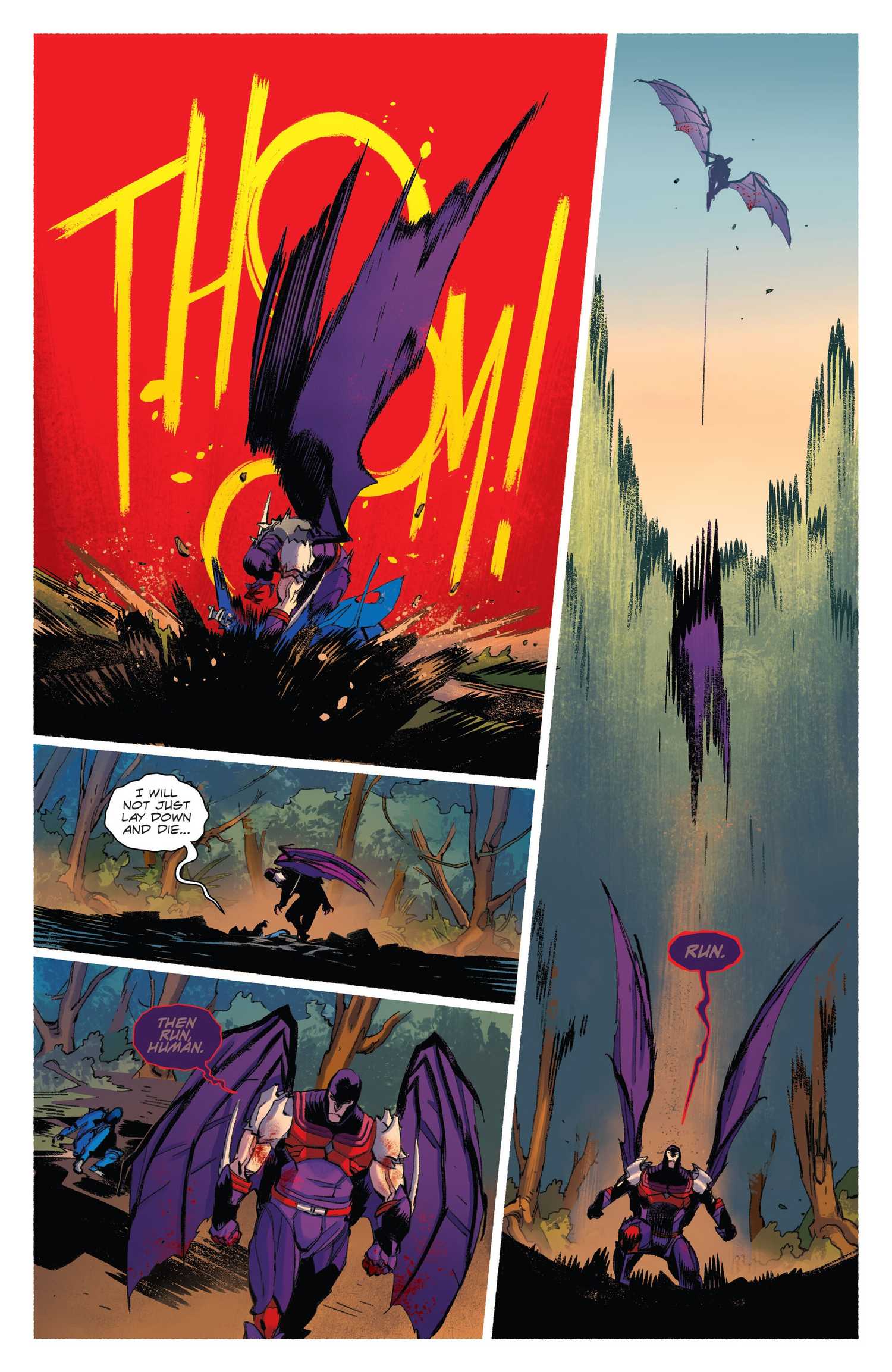 La muy necesaria actualización de Nemesis Enforcer está bien ejecutada, con la enérgica línea de trabajo del artista Andrea Milana ayudando a vender la velocidad y el poder del guerrero alado de Cobra-La. Ciertamente, está muy lejos de la representación original de Nemesis Enforcer de la década de 1980, que nunca alcanzó el potencial del personaje. comandante cobra #4 rectifica eso, convirtiéndolo en una fuerza a tener en cuenta, mientras masacra a los Dreadnoks. Incluso los mercenarios más curtidos como Zarana, Zandar y Buzzer tienen miedo de enfrentarse a la criatura de frente, temiendo que caiga del cielo y los haga pedazos en un instante.