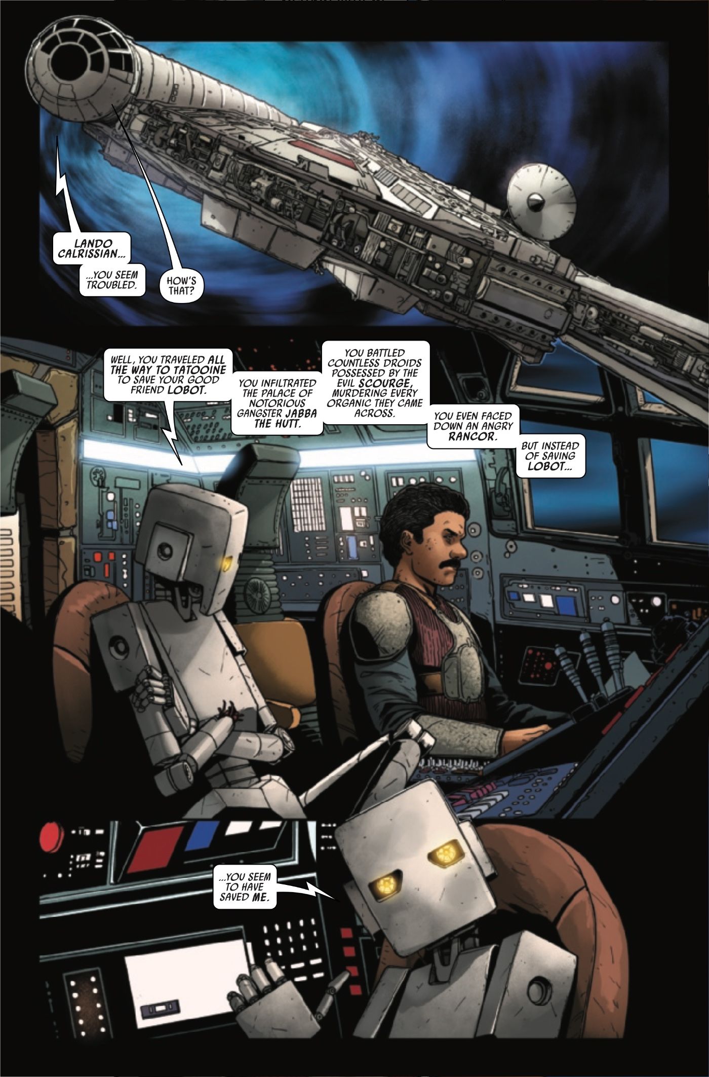 Establecer entre El imperio contraataca y El regreso del Jedi, Lando ha estado trabajando para ayudar a la Rebelión que se ha estado reagrupando después de la devastadora Batalla de Hoth. Sin embargo, Calrissian aún tiene que convertirse en un verdadero creyente en la causa rebelde, principalmente debido a su preocupación por ayudar a su amigo cyborg Lobot, quien durante mucho tiempo ha sido su mano derecha. Sin embargo, el viaje de Lando ha resultado en que el infame estafador haya traicionado a la Rebelión y al mismo tiempo haya dejado pasar la oportunidad de que Lando salve a Han en su prisión de carbonita, como se ve en el nuevo avance de Guerra de las Galaxias #40 de Charles Soule y Madibek Musabekov. Las páginas de vista previa se pueden ver a continuación:
