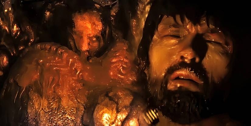 En una escena eliminada de 1979. ExtranjeroRipley (empuñando su icónico lanzallamas) desciende a las profundidades del Nostromo y se encuentra con algo mucho más inquietante que el Xenomorfo. Ve a miembros de su propia tripulación, incluido Dallas, que apenas estaba vivo, colgados de la pared, mutando y “alimentando” a ovomorfos en crecimiento en un proceso conocido como “Eggmorphing”. Luego, Ripley prende fuego a todo, sacando a Dallas de su miseria y asegurándose de que el Xenomorfo no pueda completar este proceso de crear más Facehuggers y hacer crecer la colmena.