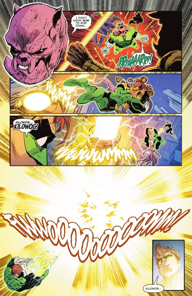 Una explosión amarilla envía rápidamente a Green Lantern a volar, después de ser atrapado por Ellie, John mira con horror mientras su atacante resulta ser nada menos que Kilowog, uno de sus aliados más antiguos..