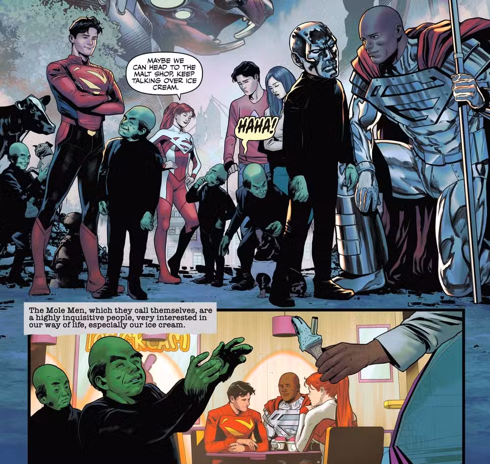 Una simple disculpa, una aceptación instantánea del malentendido y todo será un helado para los Hombres Topo y los ciudadanos de Smallville. Y aunque la película original terminó con los Hombres Topo retirándose a sus túneles sin ninguna reconciliación, su nueva entrada al canon es mucho más amigable. Lo que significa que esta probablemente tampoco será la última historia de los Hombres Topo de DC.