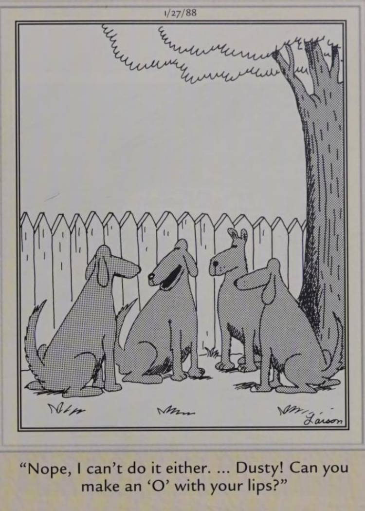 “Haz una ‘o’ con tus labios”: ¿Los perros del lado lejano son realmente tan aburridos o Gary Larson?