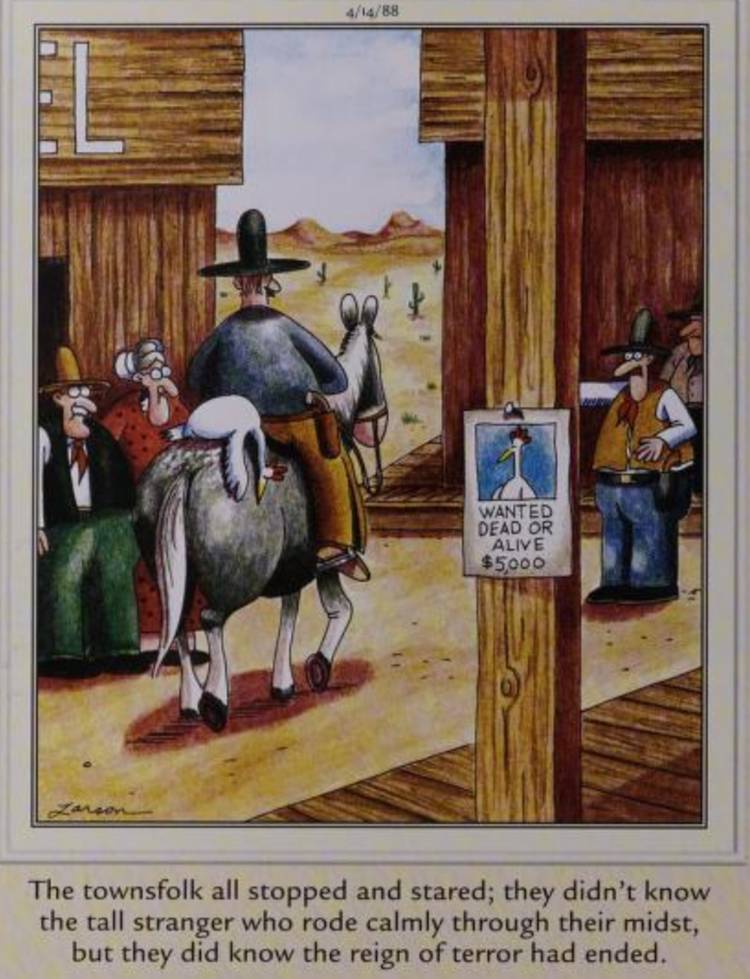 “El reinado del terror había terminado”: uno de los dibujos animados de vaquero más absurdamente elaborados de Gary Larson