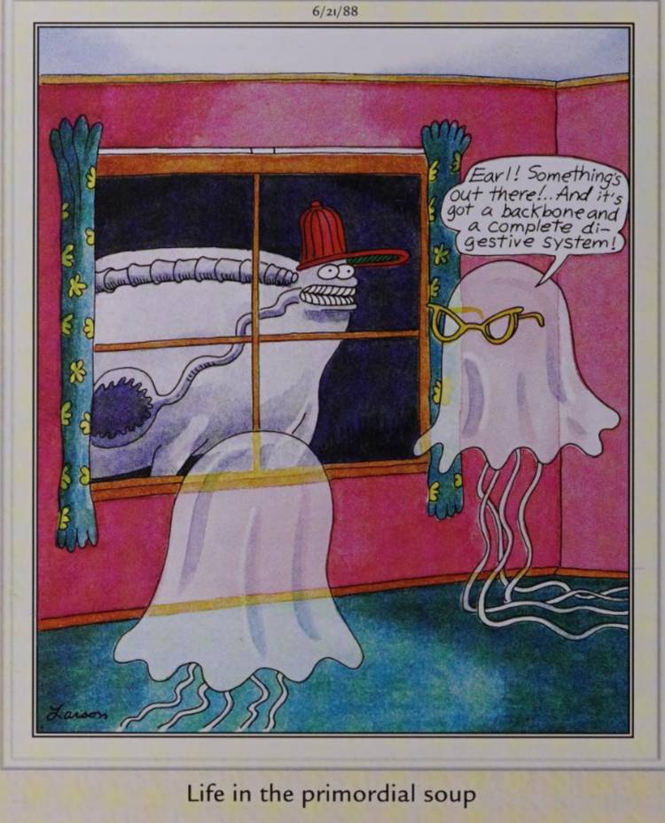 “En la sopa primordial”: Gary Larson sale a la extremidad para tratar de humanizar organismos unicelulares