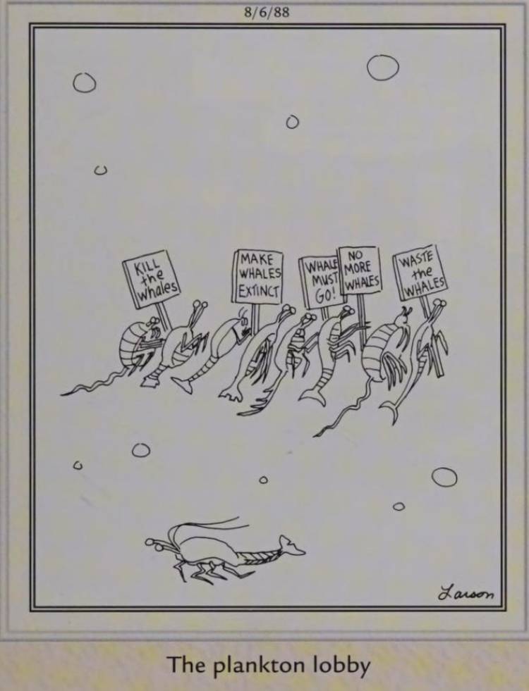 “The Plankton Lobby”: las ballenas del lado lejano tienen un objetivo en la espalda en esta absurda caricatura
