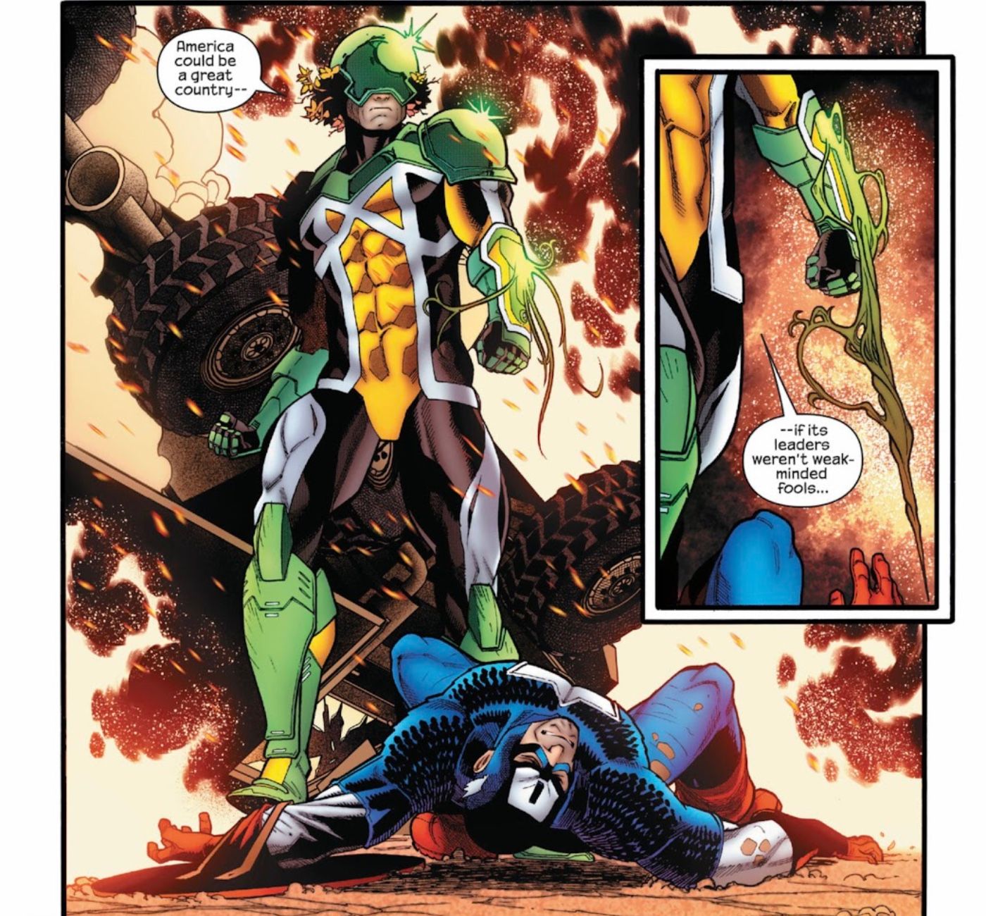 Esta no es la primera espada que los fanáticos ven manifestada por la tecnología de la planta Krakoan. Después de todo, esta maniobra se ha convertido en un elemento básico de Domino en las páginas de Fuerza X desde que le dieron un guante lleno presumiblemente con el mismo armamento con vegetación que la armadura del Capitán Krakoa. Sin embargo, demuestra cuán superado está el Capitán América cuando se trata de enfrentar a su nuevo malvado opuesto en una confrontación uno a uno. Esta confrontación contribuye en gran medida a restablecer las capacidades de la tecnología krakoana y la amenaza que puede representar ahora que su país de origen ha sido derrotado.