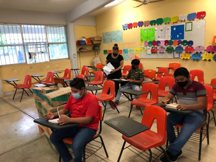 “El regreso a clases fue consensuado y se logró a través de muchas reuniones”, explicó el director del plantel, Luis Alberto Canseco, quien junto con sus compañeros docentes trabajaron esta estrategia semanas antes y lograron que a través de módulos con grupos y subgrupos, se diera este plan del regreso a clases presenciales donde ante todo se privilegia el rescate de la lengua zapoteca.