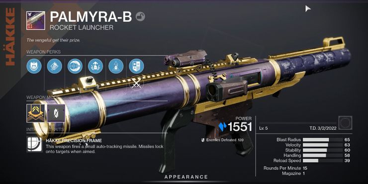 Los lanzacohetes pasaron generalmente desapercibidos para la mayoría de destino 2‘s, pero su beneficio en Season of the Chosen los convirtió en una de las mejores opciones una vez más. Palmyra-B representa lo mejor de su clase para el tipo de arma, y ofrece excelentes combinaciones de beneficios para cualquier jugador.