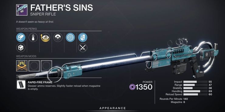 Otro francotirador presentó esta expansión, Father’s Sins es un arma de vacío de disparo rápido que se puede obtener a través de la actividad The Wellspring en Savathun’s Throne World. También se puede fabricar después de una rutina decente, lo que significa que los guardianes pueden elegir a mano cualquier selección de beneficios que deseen.