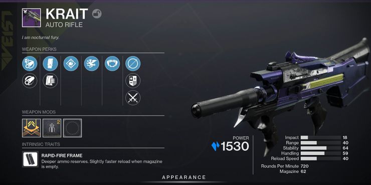 Desde que las armas de estasis se introdujeron oficialmente en el grupo legendario la temporada pasada, la conveniencia de las armas cinéticas se ha revitalizado. Krait no es una excepción, con un montón de combos de beneficios poderosos y únicos para completar cualquier construcción.