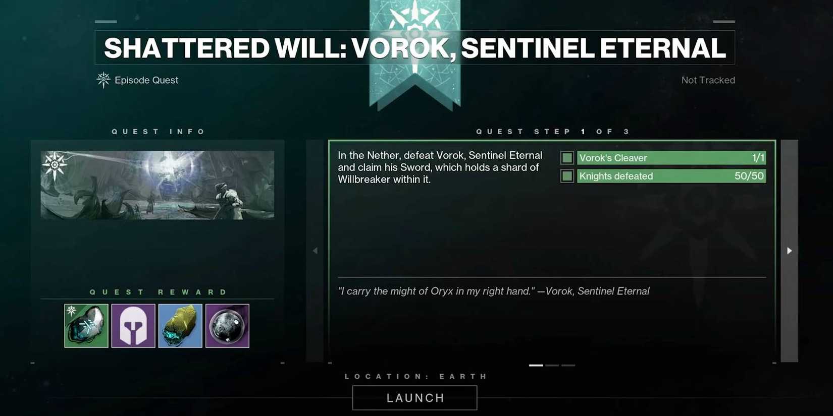 La búsqueda vinculada a Vorok se llama “Shattered Will: Vorok, Sentinel Eternal”, a Misión que recoges de la losa de formación en la última ciudad área. La historia que rodea a Vorok proviene del semanario Herejía misiones que han tenido lugar desde La forma final expansión dlc para Destino 2. Su objetivo para la búsqueda de Vorok es obtener su fragmento de Willbreaker, un poderoso artefacto necesario para progresar en la historia.