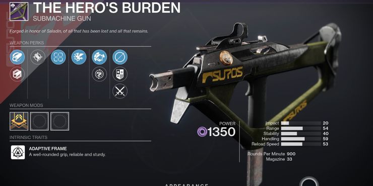 The Hero’s Burden es una de las armas reelaboradas que se ha relanzado en Destiny 2, lo que le otorga al SMG nuevas ventajas y un nuevo rol divino.