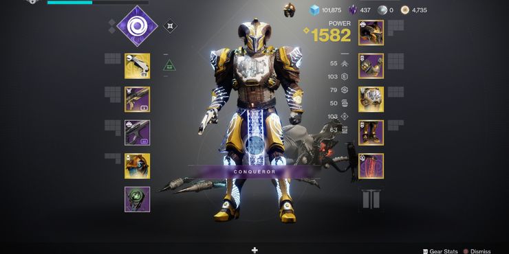Los guardianes deben echar un vistazo a su inventario para ver qué piezas de armadura exótica tienen disponibles para cada clase, o la clase que planean usar en las Pruebas de Osiris. Además, cualquier pieza de armadura exótica debería funcionar para mejorar las estadísticas de los personajes de los Guardianes, por lo que es tan importante usar una armadura que proporcione un aumento de calidad a las estadísticas de los personajes como lo hace con la capacidad de supervivencia del Guardián. Por ejemplo, la construcción en la imagen de arriba es un Void Titan usando Ward of Dawn como su Super, y Heart of Inmost Light como su pieza de armadura exótica. Las estadísticas de carácter de Resiliencia e Intelecto en la armadura de este Guardián les permiten alcanzar el Nivel 10 en ambos casos, con las estadísticas de Disciplina, Recuperación y Fuerza cayendo en los Niveles cinco, siete y seis, respectivamente.