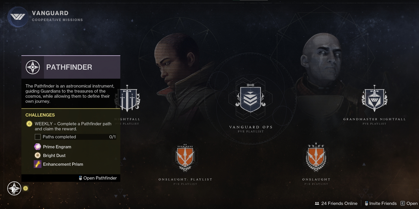 El Ritual Pathfinder cubre cinco cosas: Vanguardia, Anochecer, Embestida, Gambito y Crisol. En lugar de completar recompensas separadas para cada actividad, puedes optimizar y completar todo en un solo lugar. Esto significa que probablemente reiniciarás este Pathfinder con más frecuencia, así que aquí está el botín: