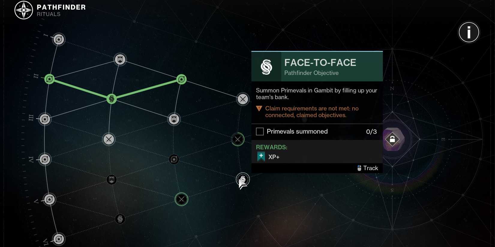 Los desarrolladores de Bungie también mencionaron que estos Los Conquistadores rituales se alinearán con cualquier potenciador de reputación. que podría estar activo. En una semana con Gambit Booster, verás muchos más objetivos de Gambit en tu Pathfinder, lo que hará que terminar el camino de esa semana sea más fácil si juegas Gambit.