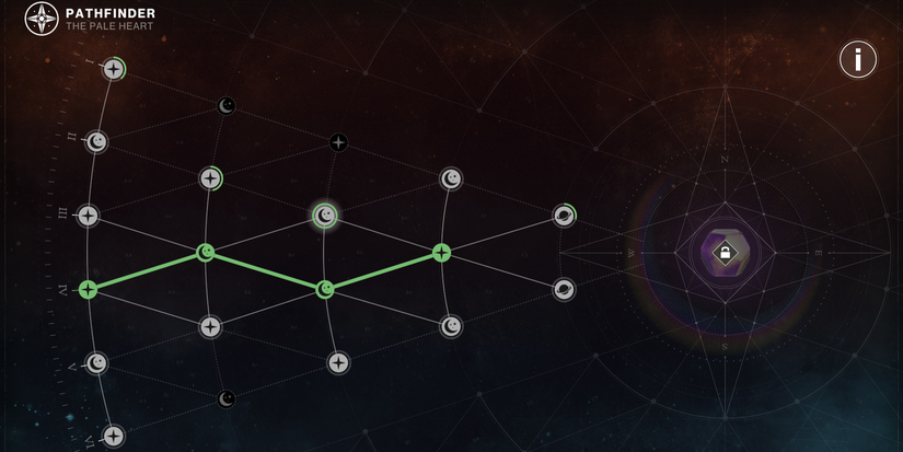 Los nodos se dividen en cinco niveles; Para alcanzar el botín del último nivel, deberás completar objetivos en un camino que te permita alcanzar el botín. Debe haber al menos un objetivo completado en cada nivel.y una vez que lo hayas hecho, podrás restablecer tu Pathfinder para obtener Glimmer y más recompensas.