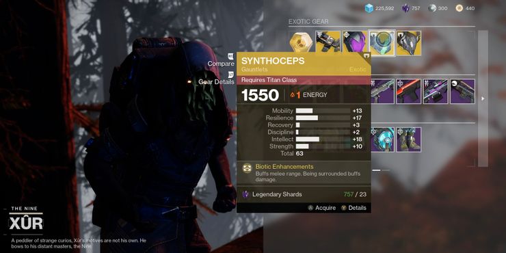 Los guardianes que aún no poseen Cerberus +1 definitivamente deberían elegir el rifle automático exótico de Xur. Hunter y Warlocks pueden beneficiarse de las estadísticas de personaje de su armadura exótica en destino 2, siempre que no tengan ya una mejor opción para cualquiera de las piezas. Los titanes también deberían elegir Synthoceps, ya que la tirada de 18 intelectos se sinergiza con una construcción que se enfoca en el uso de Super.